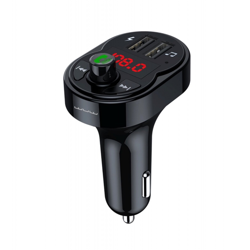 WUW-C203 Black — це пристрій для бездротового передавання звуку через радіочастоту на акустичну систему автомобіля. Іншими словами, це пристрій, що дає змогу транслювати музичні файли формату mp3 на радіохвилю FM-діапазону. Це чудовий варіант для тих, хто не бажає змінювати свою стару магнітолу, але хоче слухати улюблену музику з USB-накопичувача або прямо зі смартфона. Завдяки Bluetooth-під'єднанню, через магнітофон автомобіля, трансмітер також може відтворювати музику, збережену в пам'яті смартфона, USB-накопичувача або карти пам'яті Micro SD. Крім цього, трансмітер обладнаний двома USB-портами для швидкого заряджання інших пристроїв, тому можна відтворювати музику з мобільного й одночасно заряджати його. Цей трансмітер відкриває відразу кілька можливостей відтворення музики. По-перше, бездротовим способом, використовуючи під'єднання через Bluetooth. Можна сидіти на задньому сидінні й надалі користуватися смартфоном, тоді як на радіоприймачі гратиме улюблена музика. Сигнал обробляється моментально, тому жодних запинок і пригальмувань не буде. По-друге, можна скористатися і дротовим з'єднанням, під'єднавши ґаджети один до одного за допомогою аудіокабелю. Можна також під'єднати флешку або карту пам'яті і слухати MP3-файли з нього. Зверніть увагу, що тільки один із двох портів трансмітера підтримує передавання даних, але водночас обидва роз'єми вміють заряджати інші пристрої. Пристрій має 2 USB-порти, які забезпечують швидке зарядження ґаджетів струмом до 3.1 А. WUW-C203 під'єднується через Bluetooth до смартфона, а це вже цілий новий світ. Це дає можливість слухати музику та не тільки з пам'яті смартфона, але й з інтернету, але головне — це можливість використовувати динаміки авто як гучний зв'язок у системі Hands Free, тобто розмовляти телефоном, не беручи слухавку до рук. Це можливо завдяки наявності мікрофона, який дає змогу розмовляти телефоном за кермом, використовуючи трансмітер як Bluetooth-гарнітуру.